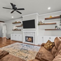 Beautiful 4-bedroom, 2-bath home with a 3-car garage in Pea Ridge. This home features high ceilings and crown molding throughout, creating a bright and inviting feel. The spacious kitchen offers granite countertops, a large island, and pantry- perfect for everyday living and entertaining. The living room includes a gas-log fireplace, built-in storage cabinets, and floating shelves for added style and functionality. The large master bedroom features ceiling beams and a walk-in closet that conveniently connects to the laundry room. Secondary bedrooms are generously sized. Enjoy the covered back patio with outlets and a gas hookup, overlooking a large fenced backyard ideal for outdoor living. Additional features include exterior outlets with indoor switches for holiday lighting and wiring for...