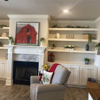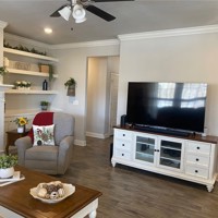 this 5 year old gem is conveniently located near 71 and Walmart - has 4 bedrooms, an open floor plan with 9' ceilings and crown moldings, a fenced yard with pergola and shed and is on public sewer -two bedrooms are carpeted and other rooms are ceramic - fireplace in living room flanked with bookcases - primary bedroom has two walk-ins and double vanities plus soaking tub - rear deck is covered - house is light and bright - lives easy and feels good - 12" block foundation filled with concrete -courthouse says 1831sf, builder said 1828, appraisal said 1899 sf