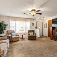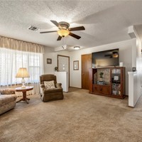 Built in 1983, this well-maintained home offers 1,707 square feet of comfortable living space. Brand new roof and gutters (2025) provide peace of mind for years to come. The spacious living room flows seamlessly into the dining area, creating the perfect setup for entertaining family and friends. The kitchen features a cozy breakfast nook, abundant cabinet storage, and easy access to the dining space for everyday convenience. A bright four-seasons bonus room offers flexible use as a home office, hobby space, or additional sitting area. The home includes two primary bedroom suites, each complete with walk-in closets and attached bathrooms — ideal for guests or multi-generational living. Additional highlights include an utility room, double-car garage, large corner lot, and ample space for gardening. Conveniently located near Hwy 71 and I-49, making your daily commute a breeze.
