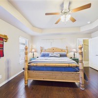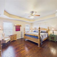 This gorgeous home on .96 +/- acres has been well taken care with only one owner. Built in 2016, it has a great floor plan. Three bedrooms are on the main level with an expansive bedroom on the second level with an en-suite full bath , closet space, and walk in attic access The primary has separate oversized walk in closets, a walk in shower and whirlpool tub. With extras galore, this is a beautiful home that will not last long. The back covered patio is a wonderful place to watch the sunset and enjoy what nature has provided.