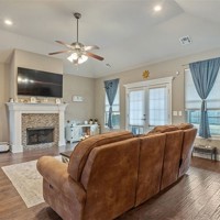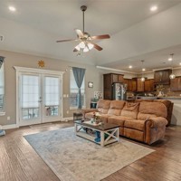12 short min from the U of A. Home features an open-concept design for both everyday living & entertaining. A spacious living room w/ vaulted ceiling, gas fireplace, & hand-scraped hardwood floors flow seamlessly into the designer kitchen complete w/ granite countertops, stainless steel appliances, & large island. The dining room offers flexibility as a home office. The main level includes a private primary suite featuring a spa-like bath w/ tiled shower, whirlpool tub, & ample storage. Also on the first level is an additional bedroom & full bath - ideal for guests or multi-generational living. Upstairs, two spacious bedrooms share a convenient Jack & Jill bath. Central vacuum system, wired security system, LED lighting throughout, & wired-for-sound capability. The rear-load garage boasts an epoxied floor, & the landscaped yard includes a wooden privacy fence w/ a large covered porch perfect for relaxing outdoors. Riverwalk has scenic walking paths & a community pool, adding to the neighborhood’s charm & appeal.