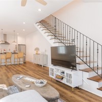 Just a few blocks from the vibrant Fayetteville Downtown Square and a five-minute walk to Ozark Natural Foods, this energy-efficient, low-maintenance home is part of a five-unit condo development that blends seamlessly into the neighborhood—an ideal example of missing middle housing. Inspired by Ozark vernacular farmhouse and craftsman design, this two-bedroom residence features timeless architectural details paired with modern efficiency. The open floor plan is bathed in natural light from expansive windows, creating a bright, welcoming feel. The kitchen is both stylish and functional, boasting a gas range and eating bar, perfect for entertaining. A large bedroom upstairs provides flexible living space, complemented by a beautifully designed bath featuring a charming clawfoot tub. With ...