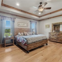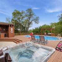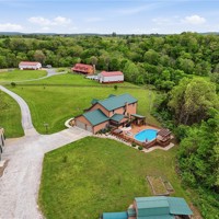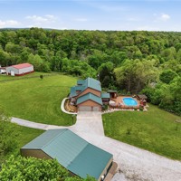 Resort style living! Spacious all-electric home at 5315 Hayden Rd in Pea Ridge offering a functional layout with 10 ft ceilings downstairs and custom crown molding. The living room features a cozy pellet stove, and the kitchen is equipped with a double oven for added convenience. The primary bedroom is located on the main level, while upstairs includes 4 bedrooms, a dedicated office, and 2 full baths, providing plenty of space for family or guests. Home features include two 80-gallon hot water heaters, generator wiring, and security system wiring. Enjoy outdoor living with a pool, hot tub, outdoor bar area, and a convenient poolside bathroom, ideal for entertaining. Additional highlights include a 30x60 shop and an automatic climate-controlled dog kennel.